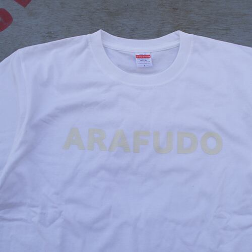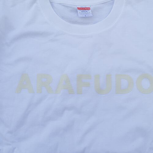 ARAFUDO LOGOがプリントされたTシャツになります。