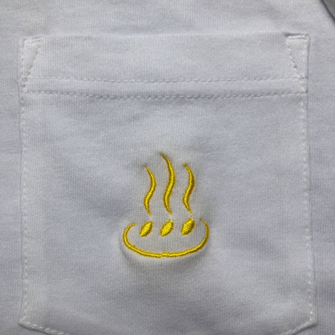 ARAFUDO MUSICの温泉音符マークを左胸のポケットに刺繍で落とし込んだTシャツです。